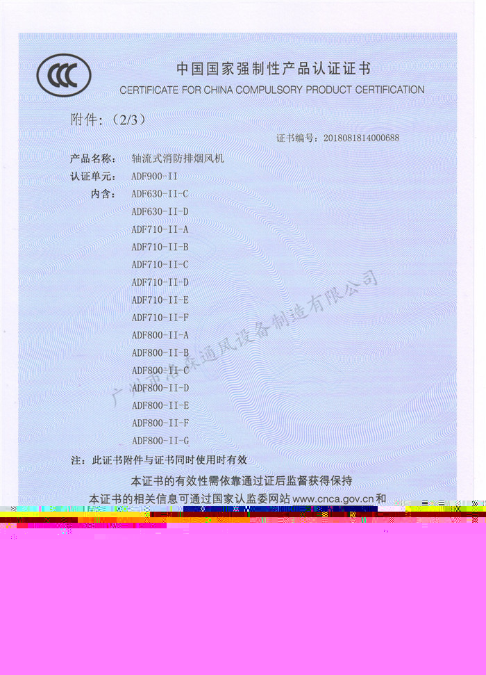 • CCCF證書-洛森風(fēng)機180314軸流式消防排煙風(fēng)機ADF900-II(ADF900-II~ADF400-II-E)
